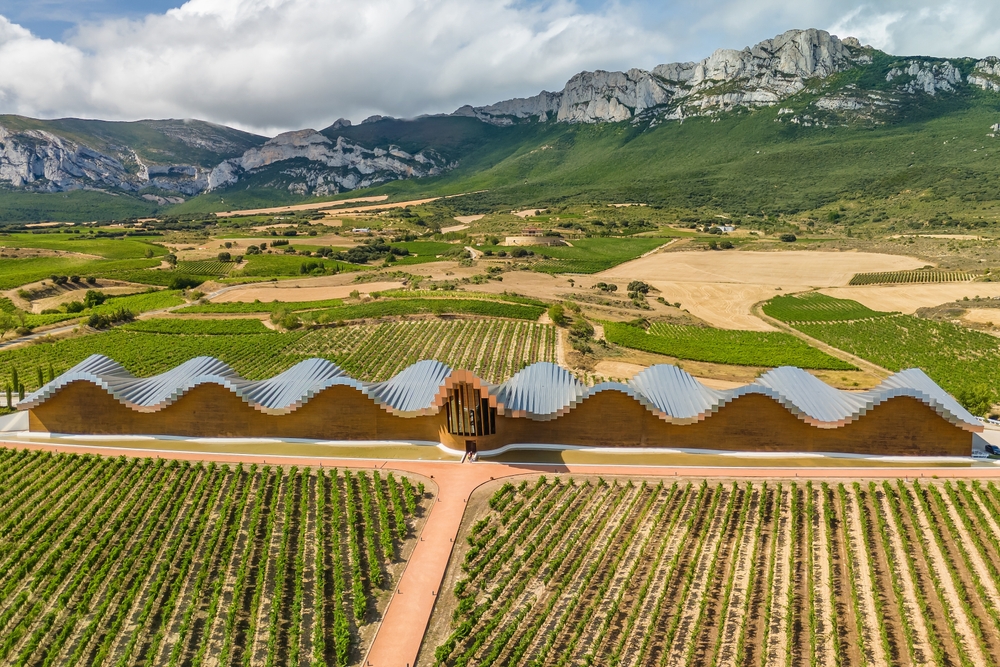 Vinařství připomínající valící se sudy dokonale souzní s okolní krajinou posetou četnými vinicemi. Aby bylo i z výšky patrné, k čemu je budova určena, má její střecha tvar sklenice na víno. Stavbu dělníci dokončili v roce 2001.