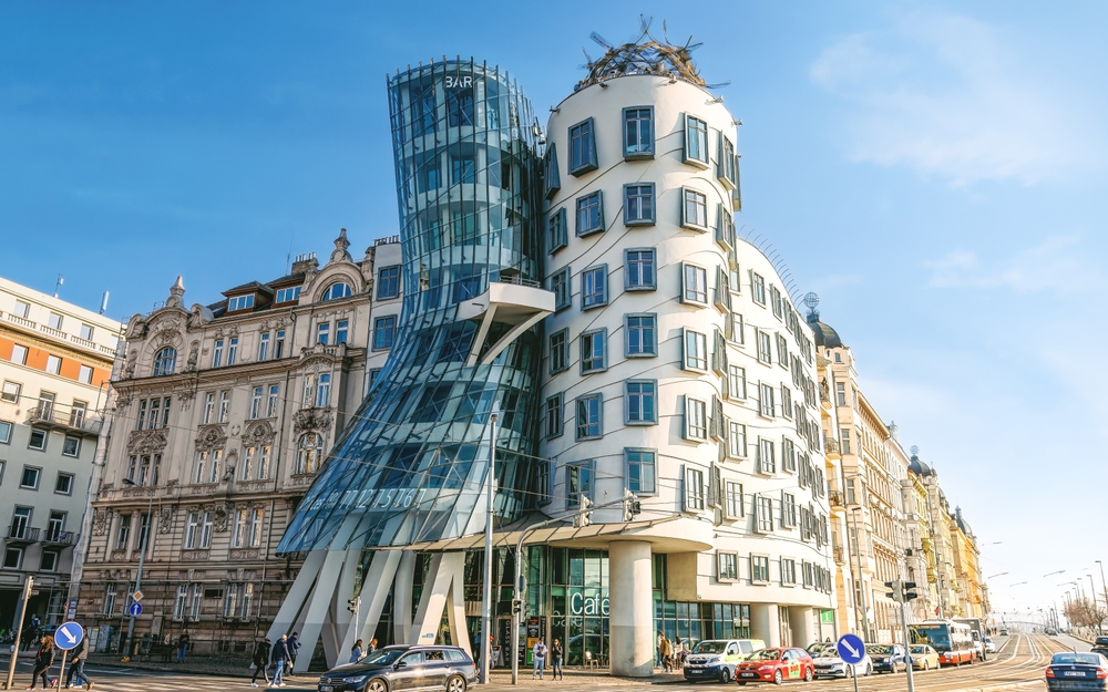 Přehled šílených staveb Evropy zakončíme v naší vlasti. Kdo by neznal nejznámější architektonické jablko sváru naší stověžaté matičky Prahy? Tančící dům (oficiálně Nationale Nederlanden Building) najdete u Vltavy na křižovatce Rašínova nábřeží a Jiráskova náměstí. Budova se skládá ze dvou netypicky tvarovaných věží přezdívaných Ginger a Fred podle tanečního páru Ginger Rogersové a Freda Astaira. Návrh designu vytvořili Vlado Milunić a Frank O. Gehry.