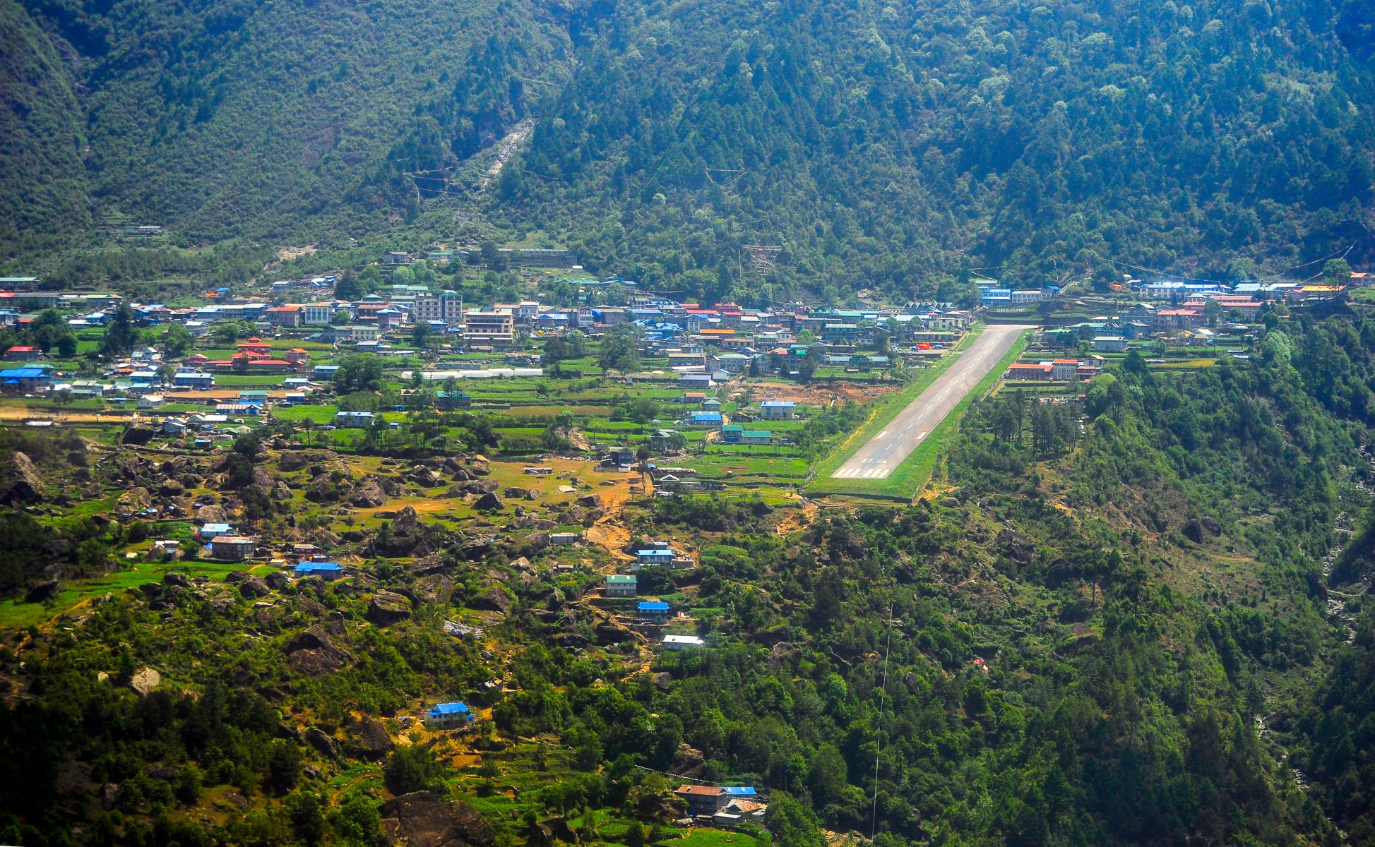 Letiště Lukla v Nepálu bylo vybudováno v 60. letech 20. století z iniciativy sira Edmunda Hillaryho, který chtěl zjednodušit přístup do oblasti Khumbu. Tehdy tu byla jen travnatá plocha. Samotná asfaltová dráha byla postavena až o mnoho let později.